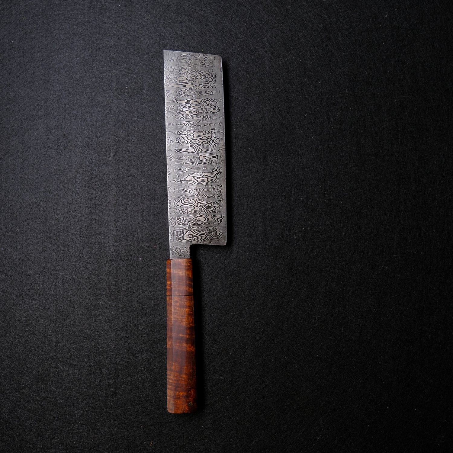 Not to be confused with a Cleaver, the Nakiri has a flat profile which should be used in a flat slicing motion for precision-cut vegetables. The flat blade profile is perfect for push cutting, but it will make rock style cutting uncomfortable.